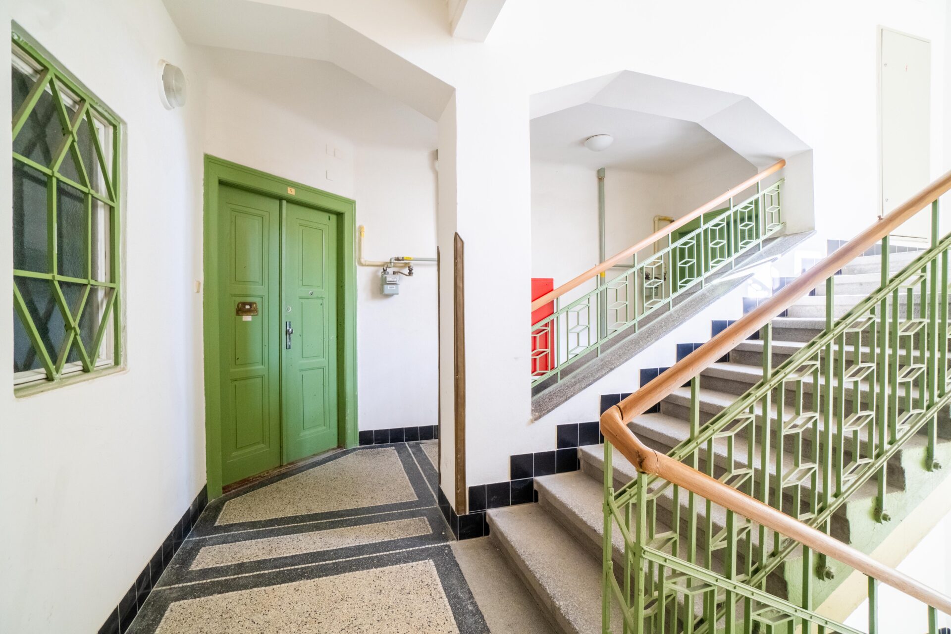 Poloha bytu nabízí kombinaci komfortu veškeré veřejné dopravy a infrastruktury v pěší vzdálenosti pouhých několika minut od domu a zároveň bydlení v klidné části Anděla odstíněné novou zástavbou.